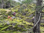 There were eight of us for this exploration of an area which is planned for logging on two sections of cut block 12-148. This was the first day we had hiked in sunshine for a very long time and we accessed a few locations we had never visited on Club hikes. We began on the steep ascent up Back Seat Driver, a little used mountain bike trail. Some of the rocky, mossy bluffs were very steep before it levelled out a bit more through the forest. We more or less followed an unnamed creek up to an old, disused logging road which we followed to the north until we arrived at the trail to Nugedzi Lakes. There were some “historic” artifacts along the way. These first two legs of the hike took us around, but not terribly close to, the southern section of the proposed cut block 12-148.
