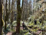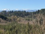 Thursday – The weather forecast had improved by morning so we added Little Mountain to the itinerary, not knowing a great deal about it. We started out on fairly predictable bike trails, which also welcomed hikers and horses. As we went further, the forest was filled with impressive boulders. After climbing to the shoulder of Little Mountain we followed a trail below the cliffs with fascinating sculpted rocks. We made our way to the lookout next to the communication towers for the view toward the Vancouver Island mountains, which were still covered by clouds.