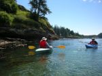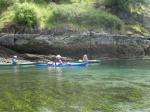 Five paddlers enjoyed an outing on Quathiaski Cove on May 26. It was mostly sunny with a light southeast breeze. The day came with very big tides and currents, which made for interesting paddling even in the relatively sheltered waters of the Cove. We explored the Cove and enjoyed the pony on Grouse Island, sea urchins, Harlequin ducks, and baby jellyfish.