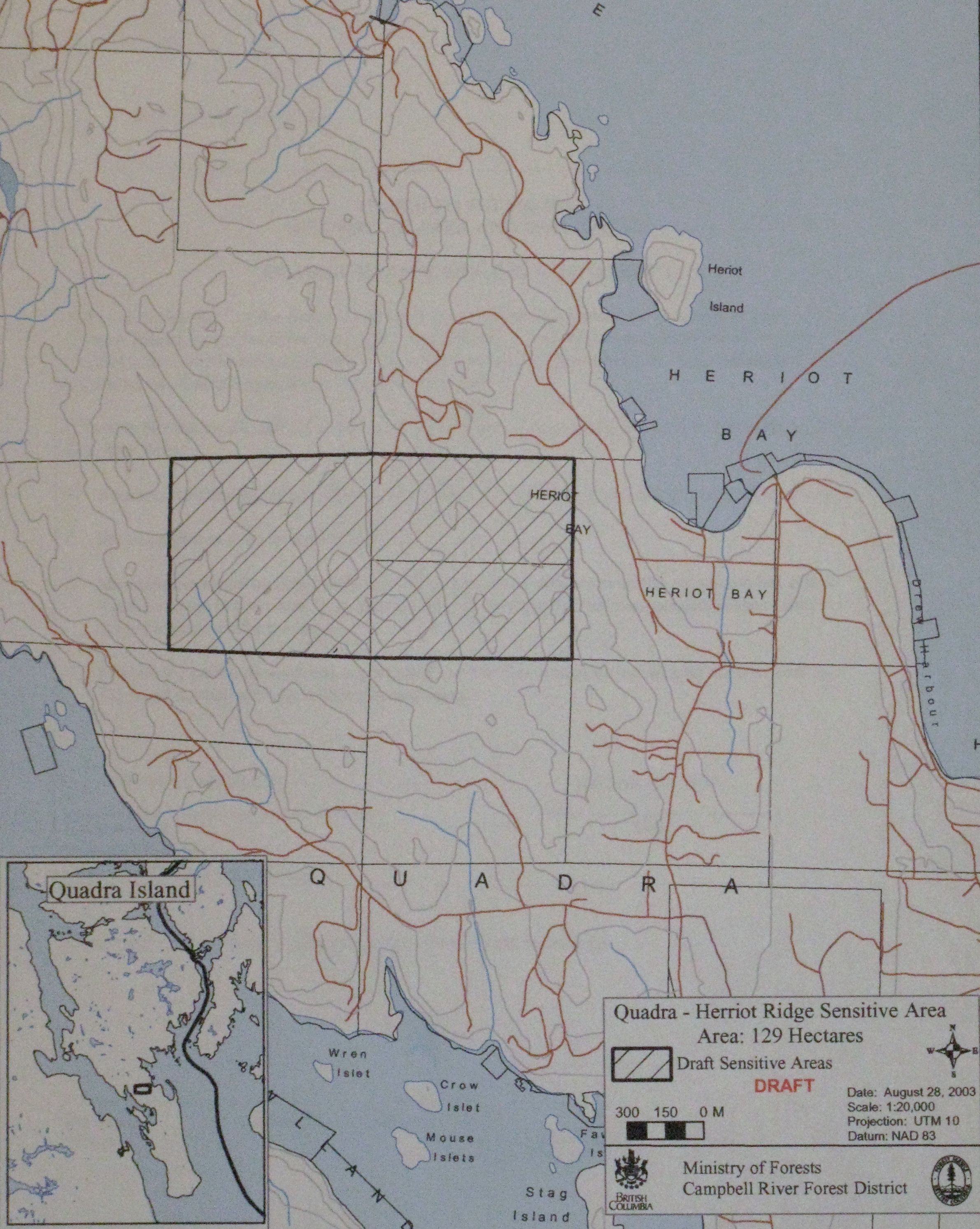 At this point several things have already gone wrong. When the site was surveyed before the application was submitted, it should have been noted that the site was already occupied by the gazetted Hope Springs Road Heriot Ridge trail and viewpoint. Officially the trail is 20 meters wide. Also the MFLNRO person in Campbell River who is responsible for trails should have been notified. The SRD was notified.