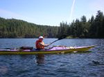 Nine club members enjoyed a beautiful, sunny, calm day at the Lakes. Leaving from the Mine Lake boat launch, we paddled to the northeast corner of Main Lake, landed on the sandy beach and hiked across to Yeatman Bay. Several of us walked out to the tidal island at the south end of the bay to have a look at the channel. The paddle took about 55 minutes. The trail, which is 1.6 kilometres long and in good condition apart from some muddy bits, takes just under half an hour one way. After lunch, about half the group went for a short swim (very welcome as it was hot!), then we headed back to the parking lot, arriving at 2:30. The lakes seemed busy (at least busy for Quadra!), but it was a very pleasant and relaxed outing. Perhaps on a future trip, we’ll paddle right round Main Lake and possibly venture into Clear Lake or Little Main.