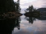 A three day camping trip to the Octopus Islands Marine Park was thwarted by poor and deteriorating weather forecasts. As the weekend approached, it looked as if Saturday and Monday would both be possible, but the day in between promised to be truly ghastly. And it was. In the end, two club members took a day paddle from the Discovery Islands Lodge through Whiterock Passage to North Rendezvous Island on the Saturday. Conditions for paddling were excellent. The narrow passage with range markers was interesting and views from the Rendezvous Islands toward the mainland inlets were awesome. On the return, there were Pacific white-sided dolphins playing at the west end of the passage. (23 km; 5½ hours)