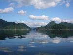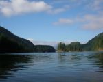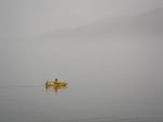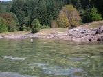 Four paddlers departed from the Granite Bay dock in quite dense fog, complete calm and quiet. The fog lifted after about half an hour and conditions were idyllic. We paddled to the end of Small Inlet, stopped for a snack on the largest island and then continued on to Orchard Bay. The group explored, basked in the sun and tried out the apples. Still wanting to paddle more, we went around the eastern island of the Chained Islands in Kanish Bay on the return to Granite Bay.