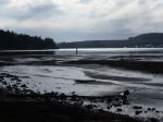 Although the day dawned dark and rainy, the weather was great by the time we started down the trail around 11:00. The group enjoyed the walk on this well constructed, undulating trail including stairs and a swinging suspension bridge. Points of interest along the way include a few excellent old growth trees, lush mosses and ferns, an old corduroy road, a few creeks, the view point over Menzies Bay from a rocky bluff, the sandy beach at Nymphe Cove and budding fawn lilies. After the final push up the hill and stairs to Wilfred Point, the group was rewarded with great views of Discovery Passage and a warm and sunny lunch stop. There were sea lions and seagulls feeding in the current. The area is steeped in the history of early logging and the major efforts made to blow up Ripple Rock in Seymour Narrows to improve the safety of navigation through those waters. When we arrived the ebb was running about 7 knots. Although it can run more than double that speed, the turbulence was quite impressive. The hike, round trip, is 8 kilometres.