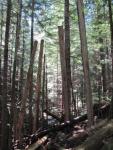 Started off the month of May with great weather and an adventurous hike. We were headed to Deepwater Bay via the old logging road but decided to take time out to look for the old logging train trestle. Debbie, Norris and Les had looked for this before but to no avail. It seemed that everyone we had talked to had not been there in a few years back and you know how memories are. This time though we found it, much to our pleasure. There is not much left but sure leaves you with a great appreciation for old engineering skills. It was quite a feat to cross that canyon and the old pilings give you an idea of the immense size.