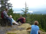 The group explored all of the Nugedzi highpoints: the old cedar grove, the lakes, the viewpoint over Discovery Passage, the lily pond and the viewpoint over Georgia Basin. The weather was overcast and hazy, even murky, and there were a few drops of rain at lunch, but the temperature was fine for the climb up the logging road. The wildflowers were excellent, though the forest is unusually dry for this time of year. (If the flowers are not all identified correctly, let us know). The pace was leisurely, with stops at all the beauty points for food and talk. 11.4 kilometres.