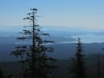 The seven hikers on the trip headed out early due to the early-July heat wave. We dropped vehicles off at the Nugedzi Lakes parking area, and headed up the trail to Mount Seymour from the Granite Bay Road departure point. The climb through the forest was not too hot yet, and we were pleased to find a breeze to help the over-heating issue once we moved onto the more open section of the trail to the summit. The views from the top were superb. A bit of summer heat haze, but still a lovely, clear panorama of peaks to the east, and the Vancouver Island coastline and more fine peaks to the west.