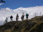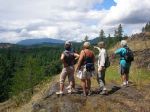 We had eight people on this short hike on short notice. Starting at the end of Hope Spring Road, we hiked up to the east and west viewpoints of Heriot Ridge on a warm, mostly sunny day. We continued north on the flagged route, which undulates through open forest and mossy bluffs. The most unusual naturalist event of the hike was a dragonfly with a bee in its mouth that landed on the trip coordinator’s shirt. The dragonfly did not leave until the bee was completely consumed, even during walking or close-up photography. The meal lasted at least 15 minutes. We returned by the Thompson Trail, with about half the group visiting the northern viewpoint over Hyacinthe Bay, and then following the road back to the cars.