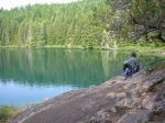 The group was undaunted by a few drops of rain at the beginning of the hike into Newton Lake and was rewarded with clearing skies. We had this beautiful and serene lake all to ourselves, but no one went swimming. It was a bit cool and some leeches kept cruising by. After a leisurely lunch and a bit of exploring beyond the second swimming rock, we returned as many others headed up to the lake. 8.9 km; 3 3/4 hours.