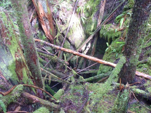 P1060265min Published March 23, 2015 at 640 × 480 in Trip Report – Karst Formations 21 Mar 2015 Log debris in large sink hole