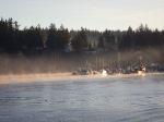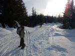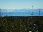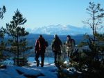 We knew that there would be snow, but the good weather was unexpected. Even the ferry ride was gorgeous. The four of us decided to snowshoe from the Rampart Hill chain-up area rather than going to Raven Lodge. The conditions were great: plenty of snow and, at -5° C, it was light and fluffy except where wind-packed. We meandered along a variety of tracked logging roads with excellent views of the mainland mountains. We stopped for lunch on an open knoll where we were pestered by Whiskey Jacks and then continued to ramble over the undulating area. We spent a while in untracked snow and then returned to the cars as the cloud above and below us increased. It was an easy day for the first outing. About 2 ½ hours; 6 km.