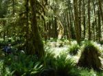 Four hikers and one dog enjoyed a lovely spring hike, beginning at the south end of Vic’s marsh where we were fortified by ripe salmonberries. We stopped for a look at the old barn built by Vic Balatti. The building is still sturdy but several square-timbered floor and ceiling joists have been removed. The trail winds along the marsh through open Douglas fir forest with occasional old growth fir. Past the end of the marsh the trail passes through stands of moss-covered alder, hemlock and back into mature fir. Several old growth cedar are lying on the ground where they were cut sometime in the past and left for some reason. One large solitary Western white pine was noted along the trail. We stopped for lunch in a grove of old growth fir, then proceeded on a short distance to the main stand of old fir trees. One giant clearly stood out in the crowd, a massive, stovepipe-straight beauty that was worth the hike all by itself.