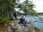 Six of us enjoyed our hike along the Surge Narrows trail. We stopped at the first viewpoint to watch the tidal rapids (8.8 knot flood tide at 11:00), then walked the route trail and shoreline through Raven Bay. We had good views of starfish and urchins. After lunch on the rocky point the tide was still low enough to go to a small island for views up Okisollo Channel.