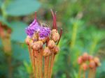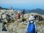 For the effort it takes to get to the top of Mt. Albert Edward, you want to get the reward, the great view. The weather forecast was for hot and sunny. Up until the last moment and then it changed to cloudy and rain, so we moved the trip a few days earlier so we would only have rain on the walk out, with luck. So four of us packed up our backpacks and headed in to Circlet Lake via Helen Mackenzie Lake. It was 34°C in Campbell River that day, but not so hot at the higher elevation we were at. But we went swimming in Circlet Lake when we got there. We got a couple of the tent pads near the lake since we beat the weekend crowds. The next day we got up to clear sky and headed up the mountain a bit after 8:00 to beat the heat. That was the theory anyway, we drank all the water we carried that day and wished we had more. It melted our chocolate. The hike starts with a steep gravel gully, but after that it’s a wonderful hike across sub-alpine meadows and up and along a steady ridge to the summit with great views to both sides. You can see the top of Albert Edward from just about anywhere and so from the top you can see just about everywhere. We had lunch on the summit. There are spectacular mountains all around. Luckily, it was a very clear day and neither we nor they were in clouds. More swimming once back at Circlet Lake. The next day dawned sunny and we put on our backpacks again and hiked out via the string of lakes, pausing to pick and eat blueberries along the way, to Battleship Lake, where we again paused to put our toes in the water. By this time clouds were building up, but the rain held off until the next day when we were home.