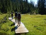 In to Circlet Lake 11.1 km, 5 hours, approx 100m elevation gain. Up to Mt. Albert Edward and back 14.7 km, 9¼ hours, approx 900m elevation gain to 2101m. Return via the Lakes 13.0 km, 5½ hours.