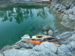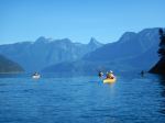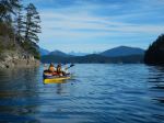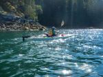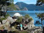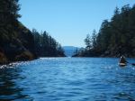 Our paddling trip got off to a slightly rocky start with an overload on the 9:05 ferry to Cortes and a further delay on the next sailing. Eventually, however, we launched at Squirrel Cove about 1:30 and headed for the Curme Islands. We were a bit anxious about finding camping space as two commercial outfitters had trips in the same week and we knew that the Curmes are a popular destination. Fortunately, East Curme was ‘vacant’ and, with four tent pads and a comfortable kitchen area, was exactly right for our group. After supper and a dramatic moonrise, we headed for our tents and set out the next morning for Prideaux Haven. The weather was perfect, calm and sunny and we had a lovely paddle to Laura Cove where we stopped for lunch, and then explored Prideaux Haven and Melanie Cove, returning to camp about 3:30. We faced some patchy headwinds in the afternoon – very localized (apparently to wherever we were paddling). After a short tea and rest break, four of the group headed over to Tenedos Bay for a “tour de Tenedos”. The moon was even brighter on Thursday evening despite some light cloud cover.
