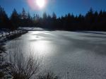 We had a beautiful, sunny, cold day for this hike to Haskin’s Farm. We had planned for a simple walk due to snow and ice on trails and roads. However, conditions near sea level were quite good. Seven of us improvised a bit on the plan. We started on the logging road which parallels the Haskin’s Farm Trail, making a nice alley through impressive trees, but skipping the farm. We visited the short Todd’s Loop Trail (a memorial to Todd Scharf), passing through a varied forest, and then continued on to the shoreline viewpoint. Everyone admired the view of Sutil Channel and mainland mountains, soaked up sunshine and warmth before continuing on the unofficial trail heading north along the shore to some excellent old growth Fir. We skirted the private homes and walked up to the golf course for some walking in open spaces with sunshine. 6.4 km; 2 hours.