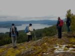 Six hikers and two dogs, Joe and Luna, enjoyed a three and a half hour hike on a loop which was new to most of the group. The weather was cloudy and mild with no rain. Starting at the Thompson trailhead, we hiked to the first viewpoint and proceeded on a route north down the ridge, dropped off the ridge at the big moss-covered maple tree and continued on a route through the forest to the old B&B trail. We turned up the B&B trail, hiking along the pretty bedrock stream as far as the logging road crossing. The group walked down this road towards North Gowlland Harbour Road. We saw one rough-skinned newt on the road, and more in the water-filled quarry. Not far past the quarry we turned south on a fairly new bike trail leading towards Rousseau Ridge. After climbing the ridge, we took a break to enjoy the view and have lunch. Our return route followed the Gowlland Harbour trail, then the Thompson trail back to the vehicles.