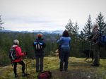 Six hikers and two dogs, Joe and Luna, enjoyed a three and a half hour hike on a loop which was new to most of the group. The weather was cloudy and mild with no rain. Starting at the Thompson trailhead, we hiked to the first viewpoint and proceeded on a route north down the ridge, dropped off the ridge at the big moss-covered maple tree and continued on a route through the forest to the old B&B trail. We turned up the B&B trail, hiking along the pretty bedrock stream as far as the logging road crossing. The group walked down this road towards North Gowlland Harbour Road. We saw one rough-skinned newt on the road, and more in the water-filled quarry. Not far past the quarry we turned south on a fairly new bike trail leading towards Rousseau Ridge. After climbing the ridge, we took a break to enjoy the view and have lunch. Our return route followed the Gowlland Harbour trail, then the Thompson trail back to the vehicles.