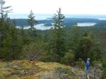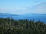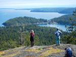 Day 4: Packed our bags, ate breakfast. Moved our baggage out to the cars. We drove to Green Mountain trailhead. The trail was a steep trek and part of the trail looked like a streambed. The view at the top of Green Mountain is spectacular, overlooking Gorge Harbour, Marina Island, Quadra and to the mountains beyond. Beautiful rock ledges, old growth, manzanita covered slopes with huge arbutus. We hiked the loop and then continued on to Nutshell Lake. A small lake which the locals use for skating in the winter. Beautiful wild flowers along the edge of the lake. Ate our lunches on a warm rocky slope. Picked up a newly made biking trail and returned to the trailhead. (7.2 km; 3¼ hours) We then drove to the ferry and returned to Quadra with our memories of Cortes.