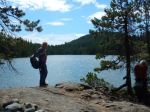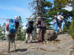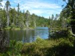 After some discussion about the most advantageous direction for doing the loop around Nugedzi Lake and Mt Seymour (lake-then-summit won) 8 hikers set off, did a quick car drop-off and started up the Nugedzi Lake trail. It is steeper than the approach from the Granite Bay Road, and we were happy to do that climb before the day got any hotter. Brief stops were made at a couple of viewpoints, and before noon the group was settled on the “mermaid rock” by Nugedzi Lake. A couple of hikers plunged in for a quick swim. We ate our lunch enjoying the breeze across the lake, and then made our way along the path that skirts the rest of the lake. With more sun exposure, but also more breeze, headed up to the ridge toward Mt Seymour summit. It is not a substantial elevation gain from the lake, but after about 30 minutes of sinuous up-and-down along the ridge one is always thinking “alright – I am ready for the summit”. Once at the top, there was a bit of overcast to temper the sun as we enjoyed the view. The trip down to the Granite Bay Road was a gentle descent, on a pretty mossy trail with welcome shade. We were out by about 3 pm. 10.6 km; 5⅓ hours.