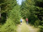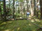 We walked back to the vehicle and drove toward Darkwater Lake. The walk is very short, through open understory forest, to the mossy peninsula. We sat on the rocks by the lake and Julie swam in the cool water. 4.0 for Kanish Bay; 1.4 km to Darkwater; 2½ hours total without the driving.