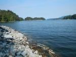 The hike to Mt. Becher was postponed due to super hot weather, poor visibility from BC forest fires, and ferry overloads. Instead we opted for a cooler, local hike to Kanish Bay and Darkwater Lake. After a long drive over rough logging roads, with a few stops for lake views and wildflowers, we parked and walked to Kanish Bay along a somewhat overgrown old logging road. It was pleasant and cool in the forest and there were still more wildflowers. Views of Kanish Bay don’t come easily, but we bushwhacked down to a gravel beach for lunch, views and a breeze.