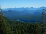 We had lunch at Nugedzi Lake and a couple pairs of feet were cooled off in the lake. Then there was a short bushwhack through a little salal and we joined a flagged route. No idea who flagged this route, but it is very pretty, going along the ridge and valleys through old open forest, then it makes a descent and joins an old logging road. The old logging road is easy walking, going past a couple of lakes, then it contours around the north side of Mt. Seymour. We stopped at several more viewpoints. Finally the logging road descends and meets the Granite Bay road and the cars we had placed there in the morning. 12.6 km; 6¾ hours.