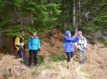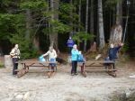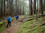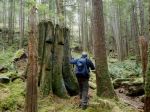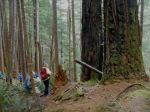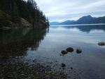 Six of us hiked the flagged route from the Surge Narrows Rd to the east end of Main Lake. The day was mild and the brush was dry as we followed the old logging road making a side trip to an un-named lake. After briefly thrashing in the brush in the wrong direction, we continued through lovely, open forest with lots of white pine and some old growth cedar and fir. However, there are some sections with major blow-down, which is not just stepped over, but involves the full-body climb up and over. Near to Main Lake we admired some exceptional old growth Douglas fir and the water falls. We had lunch at the picnic tables at the campground, enjoying the view of the Lake. After lunch some remained and enjoyed a fire in the campground fire ring, while others hiked on to Yeatman Bay. We followed the flagged route back to the vehicles, which is rather more uphill. 9.7 km; 4½ hours.