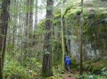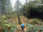 The morning was quite dry, but since it had rained over 100 mm in the last four days, everything was very wet. And we were still expecting more. The eight of us hiked this lovely loop on maintained trail, which is quite protected in bad weather. The fall colours were still strong, and everything was green and lush from the rain. The maples, cliffs and overhanging rocks, the old growth fir, creeks and moss make this a beautiful walk. 5.3 km; 2 hours.