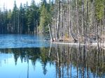 Six of us set out early in the thick fog (horizontally), but quickly broke through it to a stunningly bright, clear, sunny day, since the fog was thin (vertically). We started hiking from the summit of the Deepwater Main road, up old logging roads, sometime steep and stoney due to water eroding them, other times soft, mossy carpeted through the forest. At the top of the shoulder to the north of Mt. Seymour, there was still some snow on the ground from last week’s storms, and the lake was partly frozen. We stopped for lunch and the magnificent views of the snow-covered mountains to the north and fog-covered water passages. Thanks to Les for the great buffet lunch including smoked salmon, veggies, cold cuts, cheese and cookies. Then we continued on, down the logging road to the Granite Bay Road to complete the loop. 7.1 km; 3¼ hours.