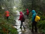 Because of a big winter storm, we substituted this short hike for the previously planned trip to Mt. Washington. Five stalwart and cheerful hikers, undeterred by the weather, came out in a gale. We started at the pull off just past Mud Lake on the Walcan Road. After crossing the creek, we hiked up the South Bluff trail over the bluff to Morte Lake. The trail is quite steep, the bluff is open and covered with moss and lichen. We followed the old logging road down to Morte Lake. No one wanted to turn back so soon, so we continued on to the viewpoint, which was relatively sheltered from the southeast wind. We took the Tripod Connector trail back to the trail along Mud Lake. Again, no one was ready to head for the car, so we took the trail west to the Mud Lake trailhead at the Walcan Road. Finally we turned back to the car. The trail was quite wet in places and no one went home dry. 6.1 km; 2 hours.