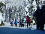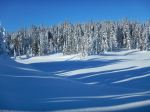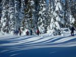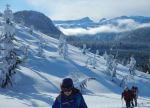This trip had been postponed for a week, during which time more than a metre of snow fell on Mt. Washington. Wednesday was the first day that the nordic area re-opened after they prepared a few snowshoe trails, plowed the road and parking lot. Eleven of us arrived on the mountain to unexpectedly sunny weather. It was gorgeous. Only a few trails were officially open, but it didn’t matter because people had broken trails everywhere. We started on Tree Beard’s Trail and returned on Old Cabin Loop to Raven Lodge for lunch. The snow covered trees and fresh snow were beautiful. We spent a relaxing hour on the Raven Lodge balcony in the sun with a great view of Strathcona Park before heading out again, this time on Rossiter’s Rise. The big climb down meant we had a big climb back up. We again met up with Tree Beard’s Trail and returned to the cars, just as clouds for the next storm were rolling over the mountains. 5.9.km; 3 hours, plus lunch.