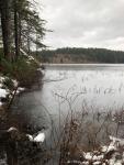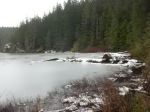 There was snow on the trail and it was slippery, so for the second act we hiked to Stramberg Lake instead of the planned Crikey Creek mountain bike trails. The mountain bike trails were steep and the route to Stramberg was flat, but the snow was a bit deep in places. We stopped for lunch out of the wind and then took the old logging road into Main Lakes Park. We followed the side trail down to Stramberg Lake for the wintery view and then returned. 4.5 km; 1½ hours.