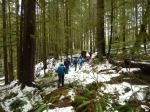 The weather forecast was not good. Bad actually: heavy rain and high winds. But seven hikers ventured out anyway. First we walked a trail along Open Bay Creek, a nice salmon stream, and walked back on a logging road. There had been quite a lot of logging east of the road since our last trip here. 3.2 km; 1 hour.