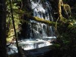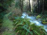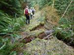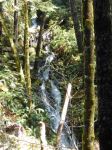 The first part of the hike was an unexpected detour through the forest around work to renew the old road for future logging operations. Trees alongside of the roadway had been neatly felled onto the logging road and not yet cleaned up. Beyond that, the walking was good except for a bit of erosion and a landslide on the north bank of the creek, which swept trees across to the south bank and the trail. The whitewater stream was impressive with recent rains and there were several waterfalls. We had lunch at the Bay in warm sunshine and returned uphill to the vehicle. 4.4 km; 2½ hours.