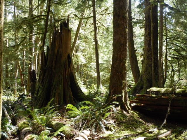 DSCN4505 Published April 21, 2018 at 640 × 480 in Trip Report – Stramberg Old Growth – 18 April 2018 Burnt cedar stump