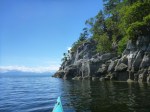Day 1: Caught the 9:05 am ferry to Cortes Island. Launched from Whaletown Bay and kayaked over to Shark Spit. It was low tide on arrival and a bit of a haul with our camping and kayaking equipment. We had big tidal ranges during this trip. Set up camp and left for a kayak trip around Marina Island. A number of old growth trees on the shoreline, this island was logged about 20 years ago. Discovered an interesting house on the west side of Marina, it was balancing on the edge of a sand cliff. It took us 3 hours to paddle around. (approx 14 km.) All enjoyed dinner and decided on an early retirement.