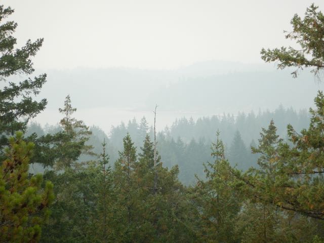 DSCN6903 Published August 24, 2018 at 640 × 480 in Trip Report – Homewood Trails Loop – 22 August 2018 View of Gowlland Harbour in wildfire smoke