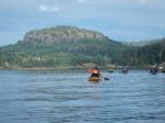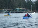 After lunch the weather turned back dry and we left for the opening between Steep and Gowlland Islands. The flood current here was not anywhere near the 4 knot max that the charts showed was occurring off Orange Point. We also found this the case for just off April Point so we slid on down to the next little bay. From there we returned to April Point Marina in another shower. All in all it was a great paddle. 12.7 km taking 3.75 hours.