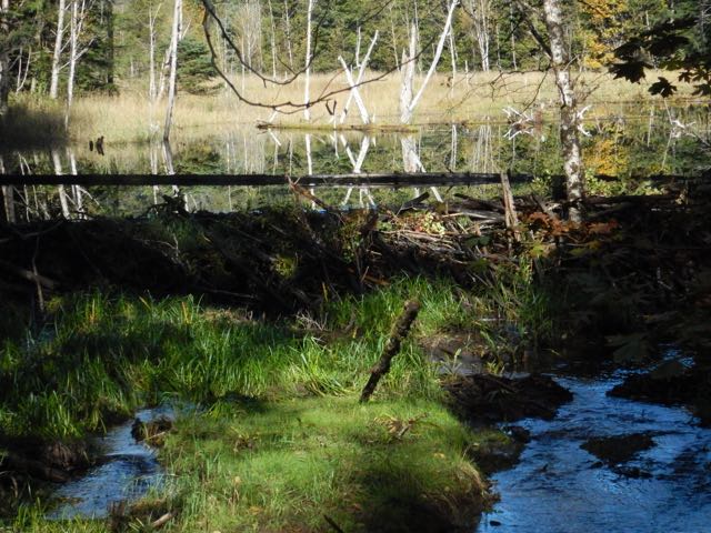 DSCN7957 Published October 12, 2018 at 640 × 480 in Trip Report – North Gowlland Harbour Bike Trail Loop – 10 Oct 2018 Beaver dam on North Gowlland Rd