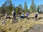 Eight of us had a beautiful fall day for this hike through open forest, over panoramic bluffs, and passing by lovely, calm lakes. We were in shirt sleeves for this very scenic loop. We started up the bike trail Morning Beer onto upper Deadfish, stopping to enjoy the view at Seven Sins. We descended Nirvana to the hiking trail around Morte Lake and stopped for lunch at the east side Morte Lake viewpoint. We ascended the South Bluff trail and followed along Mud and Reed Lakes to the Walcan Road. We crossed and hiked along Yellow Mud to Jack Rabbit, connecting back to the parking lot. We enjoyed the great views and the fall foliage. 9.6 km; 4 hours.