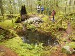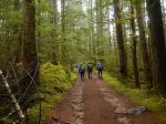 We postponed this hike by a day for better weather and were rewarded with a beautiful, sunny winter day. Ten of us followed the trail downstream along Open Bay Creek. The trail is wet in a few places with a bit of winter blow-down, but there are great views of the stream rushing through the lush rainforest. We made a loop by returning on the logging road, then wandered down Open Bay Main to the start of the mountain bike trail Rio. This trail climbs steeply and near the top there is a banked bridged, which was slippery, with some loose planks. After a quick snack break, we returned down the Crikey Creek trail, which is the more developed of the two trails. We didn’t get a lot of sun, with the sun very low in these deep forests, but it was a good, short walk. 5.4 km; 2 hours.