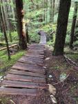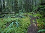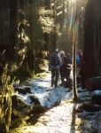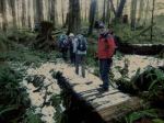 We postponed this hike by a day for better weather and were rewarded with a beautiful, sunny winter day. Ten of us followed the trail downstream along Open Bay Creek. The trail is wet in a few places with a bit of winter blow-down, but there are great views of the stream rushing through the lush rainforest. We made a loop by returning on the logging road, then wandered down Open Bay Main to the start of the mountain bike trail Rio. This trail climbs steeply and near the top there is a banked bridged, which was slippery, with some loose planks. After a quick snack break, we returned down the Crikey Creek trail, which is the more developed of the two trails. We didn’t get a lot of sun, with the sun very low in these deep forests, but it was a good, short walk. 5.4 km; 2 hours.