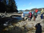 Eight of us had spectacular weather for our trip to the Children’s Forest on Cortes Island, including Carrington Bay and the Grandmother’s Grove. We took the 9:05 ferry to Cortes and the views of Sutil Channel, the mainland and Vancouver Island mountains couldn’t have been better. We were met by Sabina who guided us through the forest and told us so much about the efforts of the community to acquire this forest, so that this incredibly diverse and important habitat can remain intact. Sabina shared her amazing knowledge about so many topics including lichen and moss, wolves, wildlife trees, flying squirrels and owls and so much more. We continued on to Carrington Bay and the tidal lagoon, and crossed the narrow channel through which the tide was rushing out. We walked to the swim rock and sat in the sun for a leisurely lunch admiring the mergansers, golden eye ducks and a curious seal. From there we continued on to Grandmothers Grove, a beautiful old growth stand of spruce and cedar, in the James Creek watershed which also supports cutthroat trout and spawning salmon. The greens of the mosses were vibrant after all the recent rain. We followed the trail and logging roads back in a loop and made a short variation on the James Creek Trail before returning to the vehicles and the ferry. 10.4 km; 5 hours.