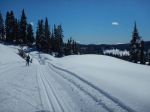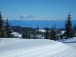 For our third trip to Mt. Washington area in less than two weeks, seven of us went x-country skiing at the nordic area. We had yet another day of beautiful weather and snow. We broke into three groups, with two people skiing the Lake Trail, three skiing out through Paradise Meadows to Far East, and two skiing through the Meadows to Jack Rabbit. Linda was getting her ski legs back after many years and she was amazing. Five of us had lunch on the balcony at Raven Lodge. After lunch, one of the five had a “Merry Monday” (mocha and Baileys), two skied out Jutland and back, and two skied out Jutland and up Legacy View before turning back. The longest day was 20.7 km; about 5 hours.
