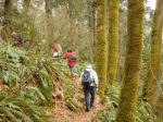 Since the snow on the local trails has compacted into slippery ice, we moved this trip to a low altitude sunny trail. Six of us and two dogs hiked the Kay Dubois trail then came back on the logging road between Sutil Road and Fox Drive. That part still had ice patches. Then we took the trail down the hill to join the Kay Dubois trail at the strange old sitka spruce tree. 5.2 km; 1½ hours.