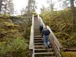 Four of us were lucky to have a dry day between monsoon-like rains. Everywhere we went there were signs of spring. We started out from the trailhead on the wide trail down to a creek edged with big Sitka spruce and pink fawn lilies. The trail narrows as it approaches Menzies Bay and then undulates through lovely, open-understory forest and bluffs with views of the Bay and Vancouver Island. In between the array of spring flowers, we admired some great old-growth Douglas fir trees. The wooden bridges and stairs were often in need of maintenance, and the trail is quite busy by our standards. We climbed the big stairs to the overlook of Seymour Narrows and stopped there for lunch. It wasn’t a really big current, but we watched the flood increase before heading back the way we had come. We were accompanied much of the way by a cheerful, high-energy dog, who we finally convinced to follow another group back to its owner. 9 km; 4 hours.