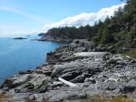 We had a good group of 11 people and 2 dogs. We parked on Valdez Road and walked the logging road to the shorter loop trailhead. We hiked through the new and the old forest to Village Bay where we stopped for a short break. The day had begun overcast, but cleared to a lovely day. We stopped again to admire the scenery from the rocky bluffs leading into Village Bay before continuing on the trail overlooking Hoskyn Channel. We stopped for lunch on the beach and then hiked back along the logging road to the vehicles. About 7 km, 2½ hours.