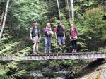 Five hikers started from the Nugedzi parking area. It was a partly cloudy day that was perfect for the climb up the old, rough, washed out road. Just past the route up to Beech’s Mountain. we turned off the road. It was a good thing that we had a GPS track from 2014 as the trail was overgrown and had quite a bit of blow down. It was fun to go a little ways and then try to find some old ribbon. Without too many set backs we made it out to the bluffs and were rewarded with some spectacular views of Discovery Passage and Quadra while having lunch. We then retraced our way back to the vehicles. 8km; 4 hours